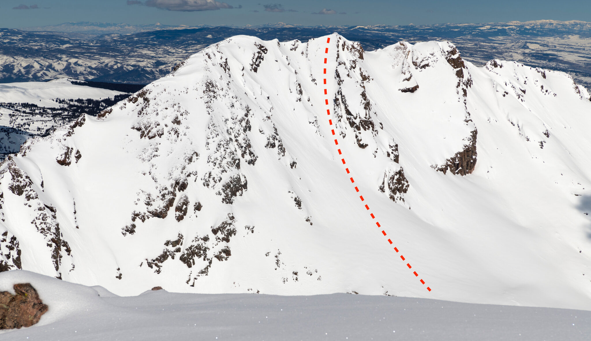 The southeast line we skied off the tippy top. Photo taken from Mt. Powell in 2019.