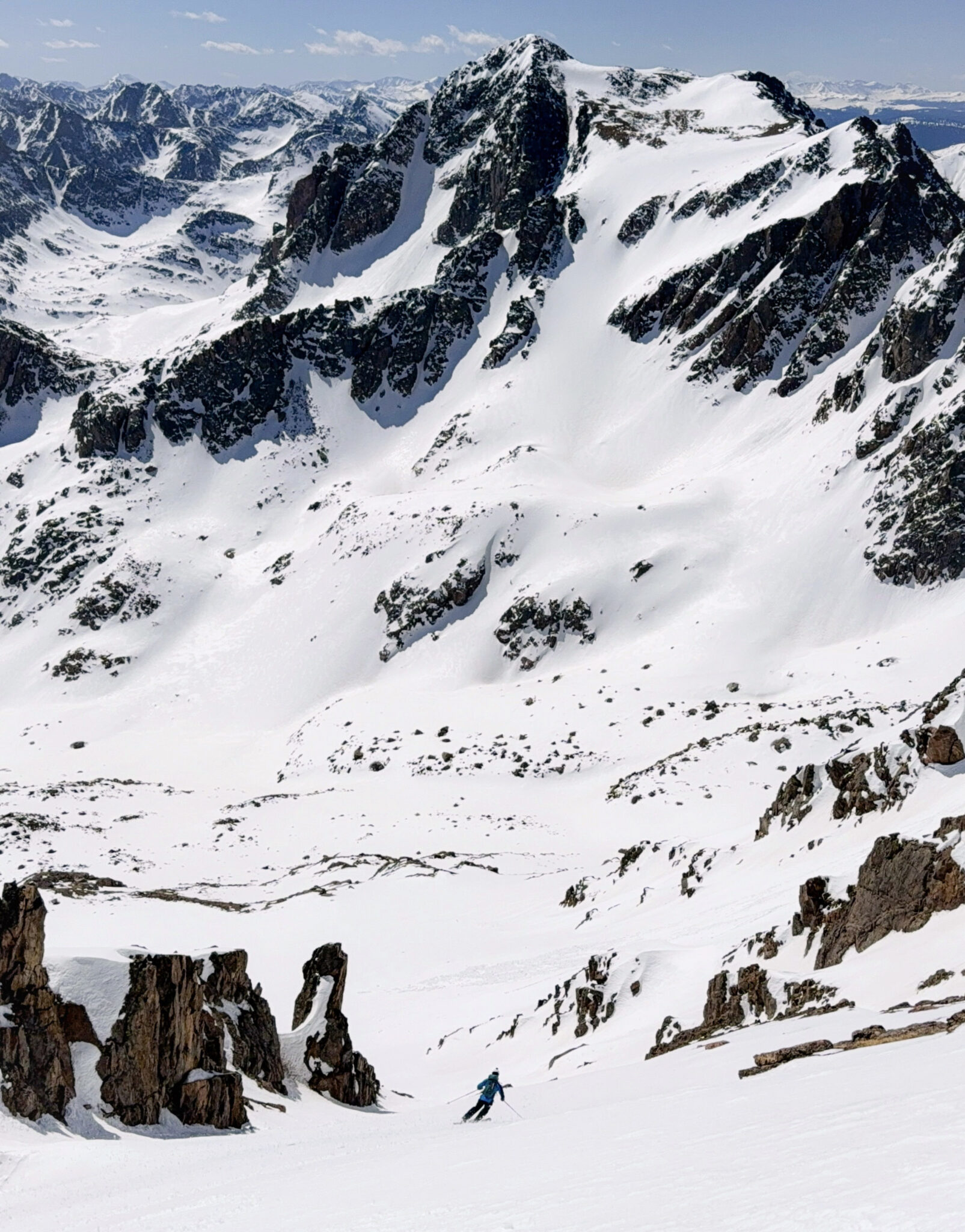 In late-April Dave Bourassa and I realized a dream ski of ours after talking about it for years but never getting around to pulling the trigger until this year. Namely, a ski descent of the northernmost peak in the Gore Range, Eagles Nest A. We ended up picking a perfect day with everything falling into place, allowing us to ski two different lines off opposite sides of the peak.