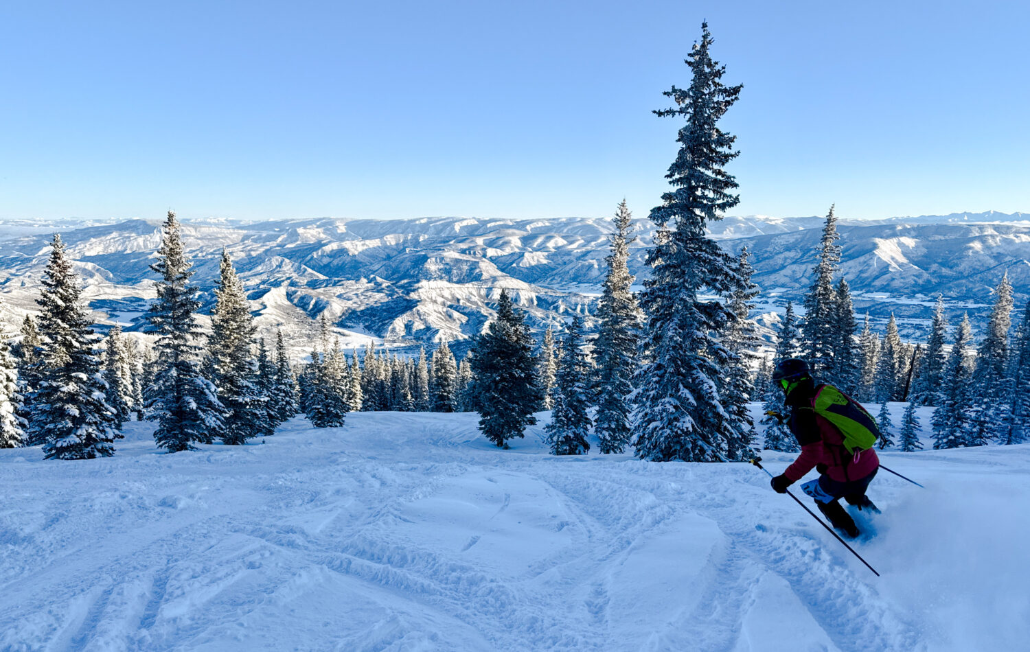 From the transition point down low it’s a long, gradual climbing traverse across the Government Trail to the crest of the ridge line between Snowmass and Buttermilk. After a small skin snafoo cost us a few minutes, Chris and I were back on track and following the well-defined skinner on up to the next transition point.